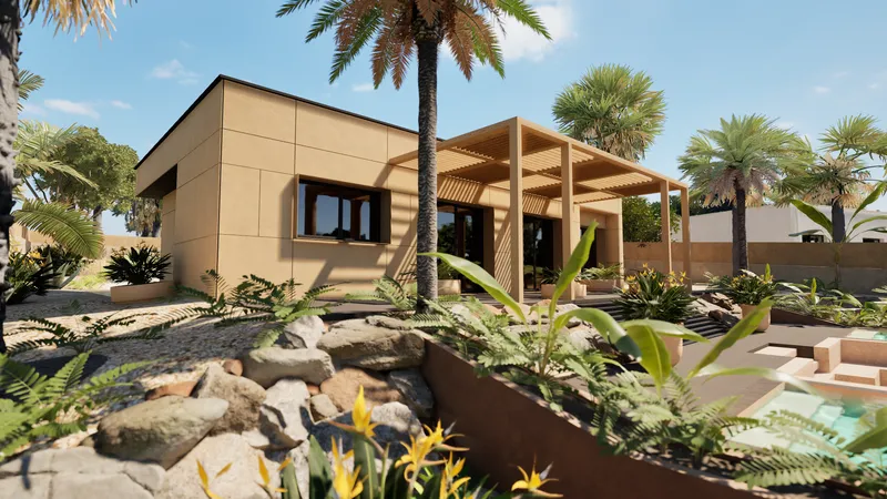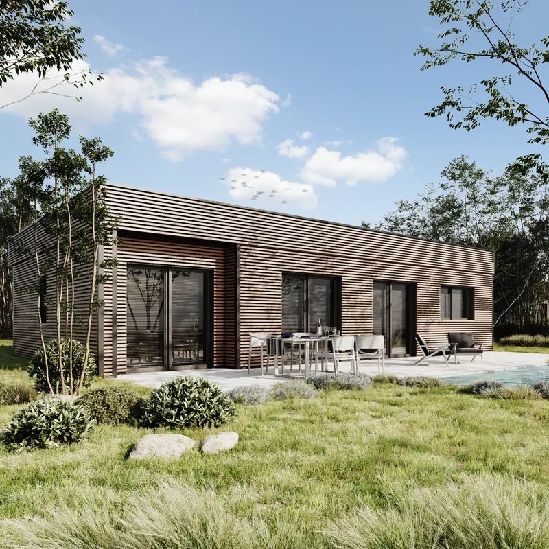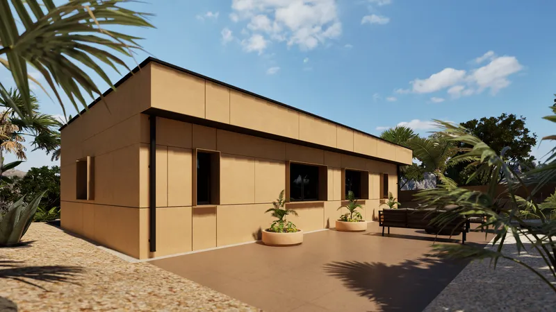 Una casa dissenyada per facilitar al màxim el teu estil de vida, tindràs una casa prefabricada d’entramat lleuger de fusta o de formigó cel·lular amb un espai totalment obert, disposa de 3 habitacions, una és tipus suite amb bany i vestidor privat i 2 banys.
