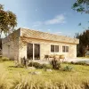 - Kit casa: Paredes exteriores sin trasdosado interior, paredes interiores de carga y tejado con parapetos. (Para disponer de flexibilidad en la distribución, las divisorias no están incluidas).